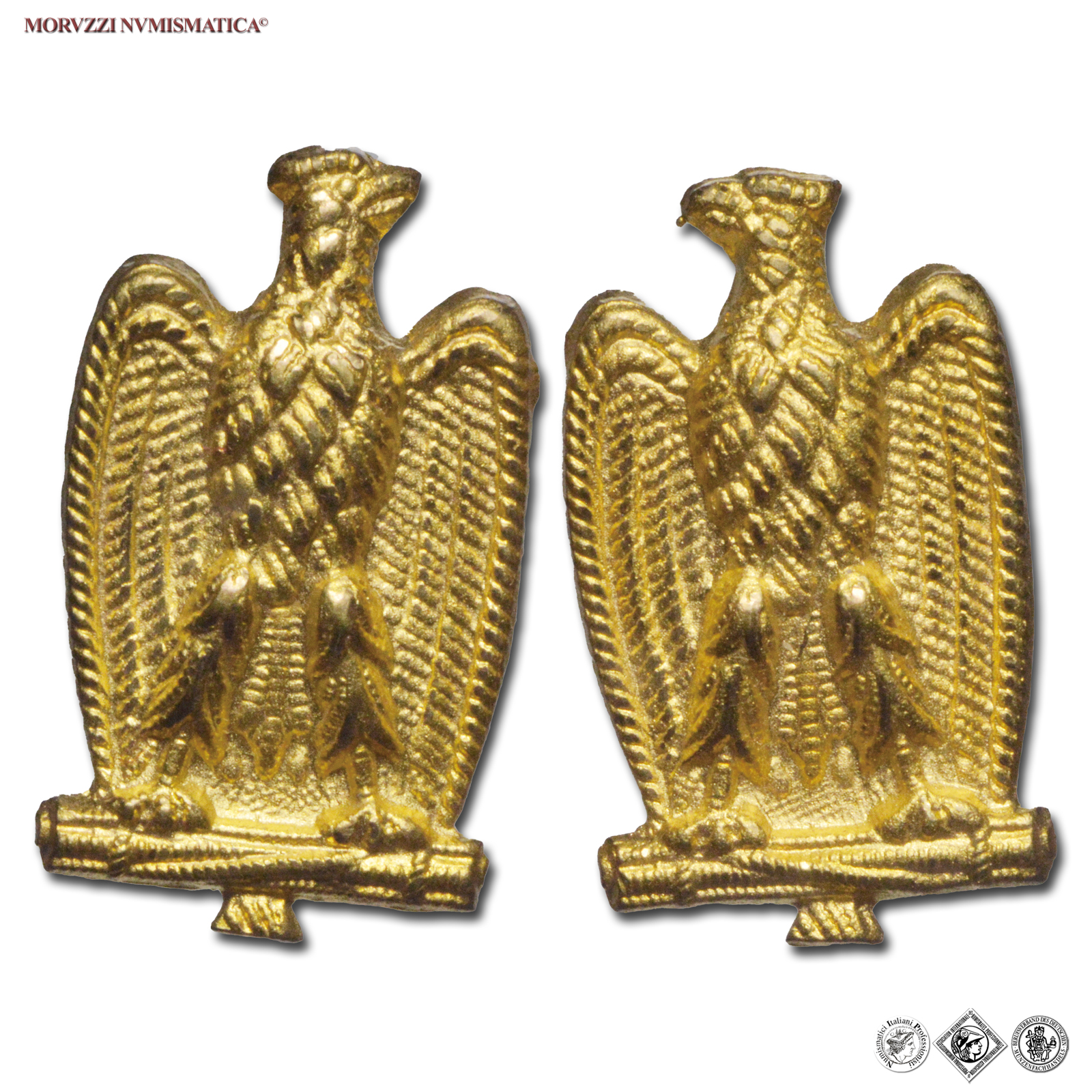 Aquile da bavero impiegati civili fascisti ruolo 1. Venivano utilizzate al posto dei fasci littori e delle stellette sulle punte del bavero dell'uniforme.