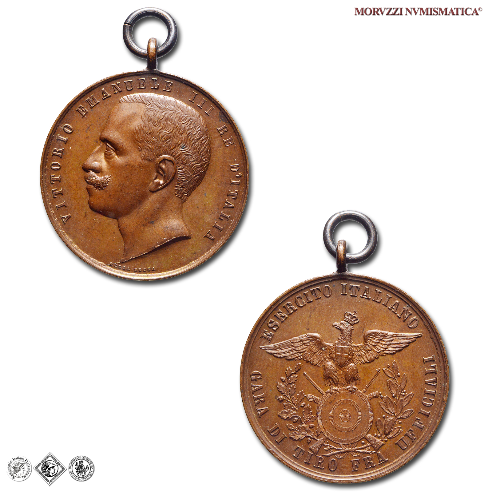 Italia, VITTORIO EMANUELE III, 1900-1943, MEDAGLIA, Gare di Tiro fra Sottufficiali, Emissione: 1901, D/ VITTORIO EMANUELE III RE D'ITALIA, testa nuda a sinistra; in basso: REGIA ZECCA, R/ ESERCITO ITALIANO / GARA DI TIRO FRA SOTTUFFICIALI, Aquila Savoia coronata, ad ali spiegate, su bersaglio e fucili decussati, tra rami d'alloro e quercia, Metallo: AE, gr. 13,00, (MY156142), Diam.: mm. 30,48, FDC