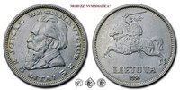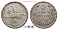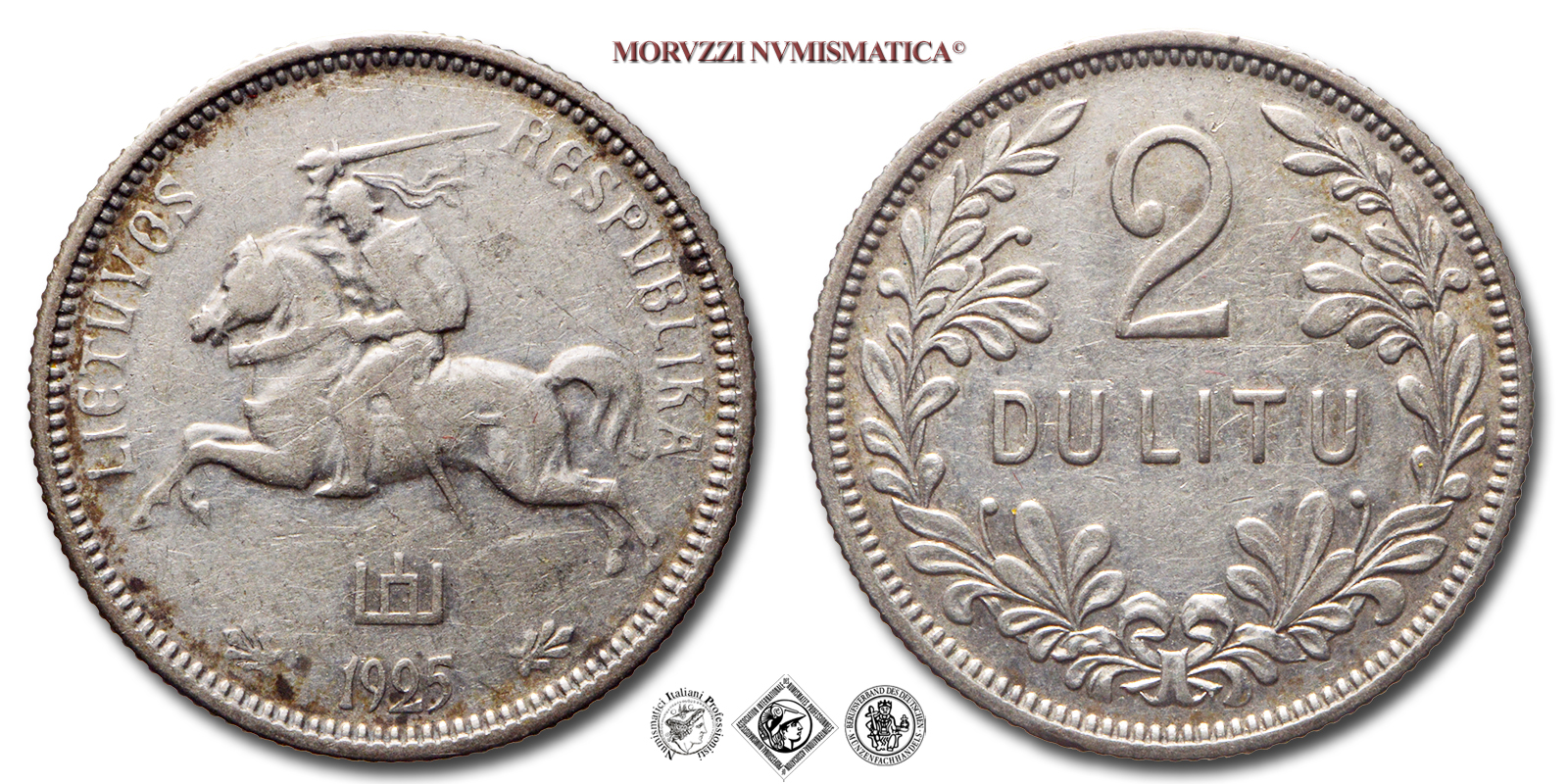 Lituania, REPUBBLICA, DULITU 2, Emissione: 1925, D/ LIETUVOS RESPUBLIKA, stemma nazionale e data (1925), R/ Valore (2 / DU LITU) all'interno di una corona fiorita, Zecca di Vilna, Rif. bibl. KM, 77; Metallo: AR, gr. 5,32, (ME153791), Diam.: mm. 22,89, BB