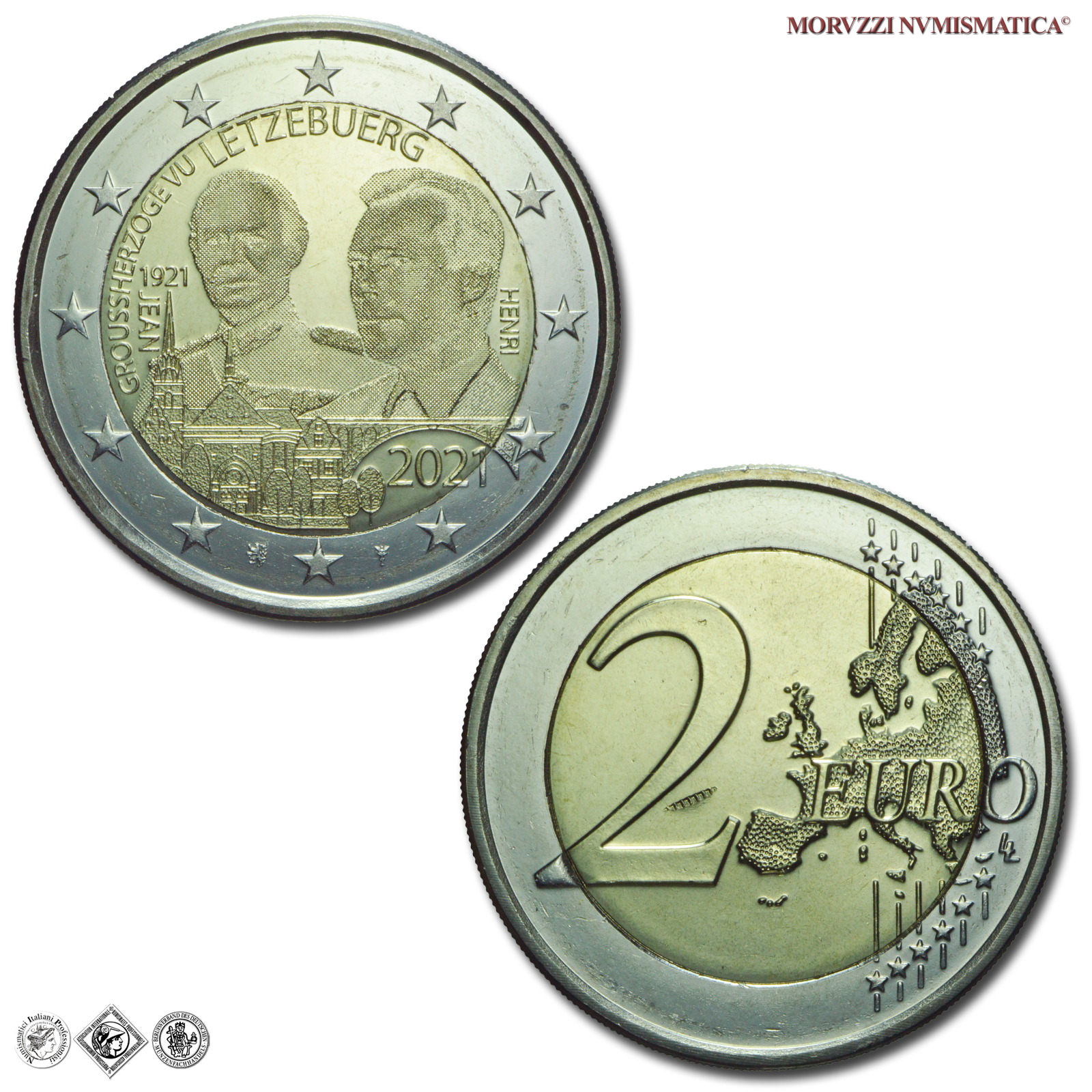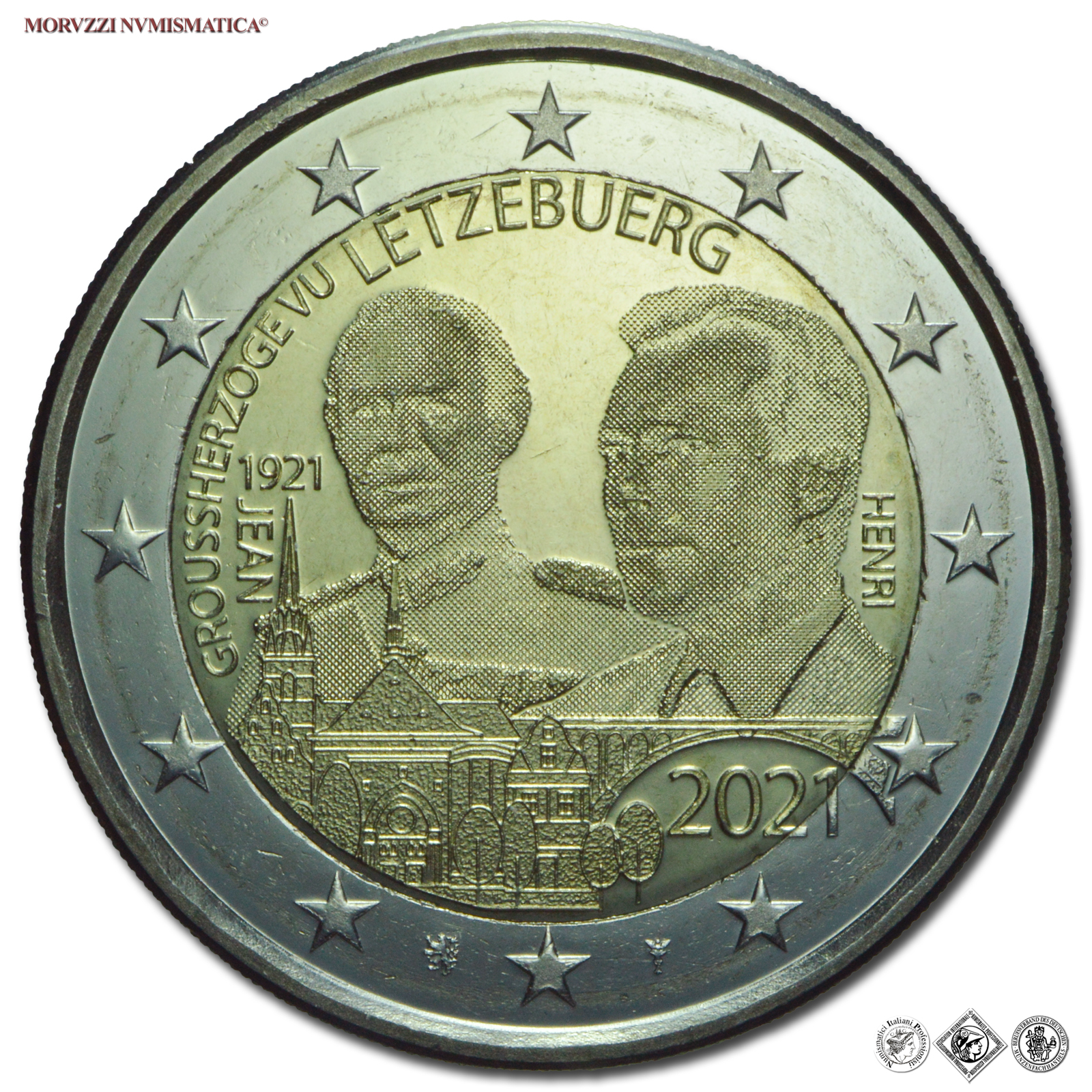 Lussemburgo, 2 EURO, 2021, Tipo: Olografico, Moneta bimetallica da due euro celebrativa del Centenario della nascita del Granduca Jean, Zecca di Bruxelles; Metallo: CU/NI, gr. 8,50, Diam. mm. 25,75, FDC
