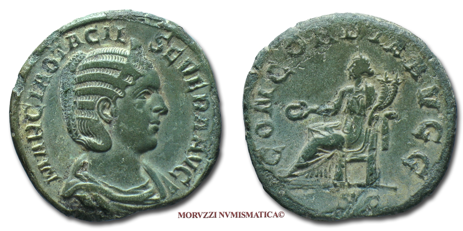 OTACILIA SEVERA, Moglie di Filippo I l'Arabo, 244-249 d.C., SESTERZIO, Emissione: 244-249 d.C., Zecca di Roma, Rif. bibl. R.I.C., 203; Cohen, 10; Metallo: AE, gr. 17,25, (MR137746), Diam.: mm. 28,78, qSPL Ex Gadoury Vendita 2019 n. 473.