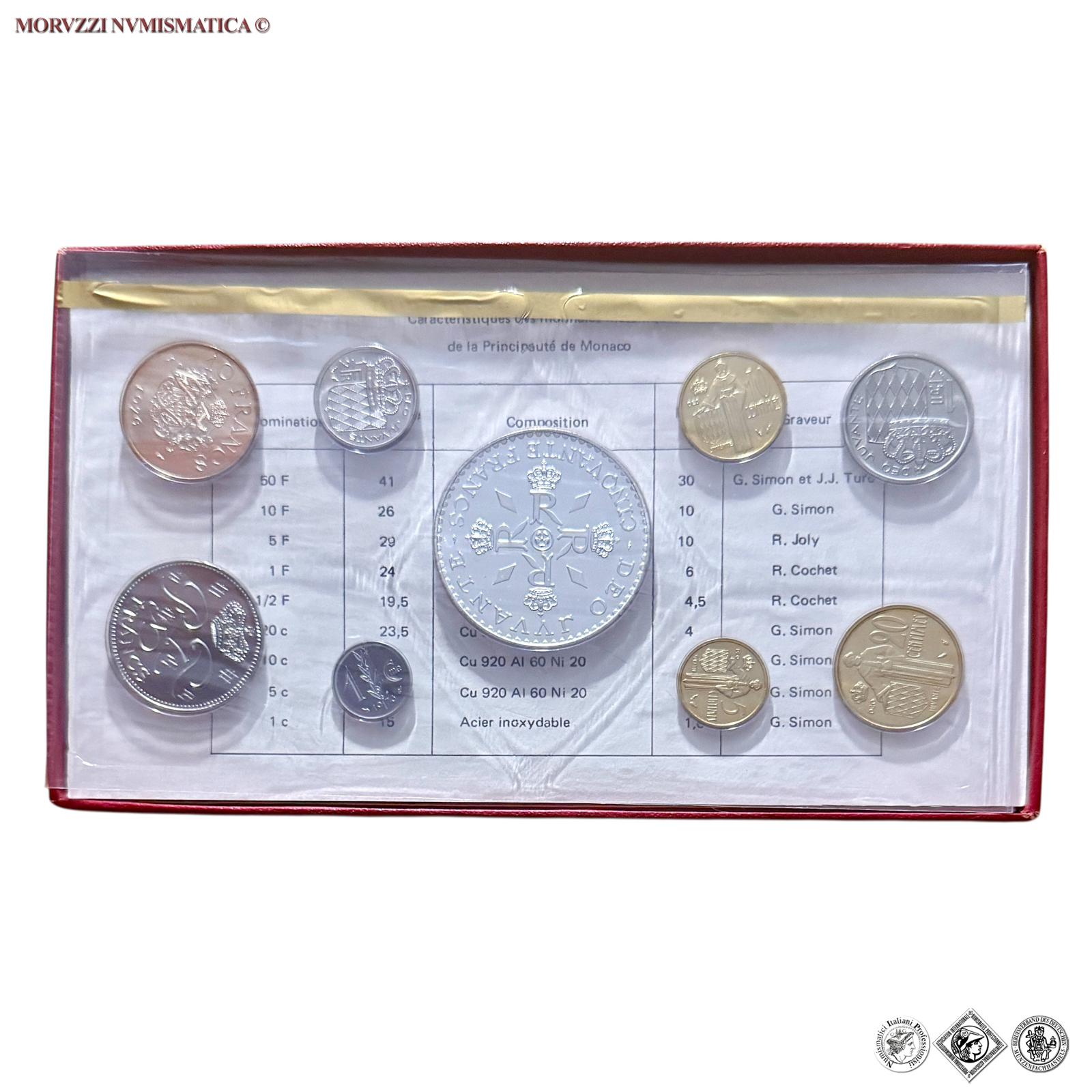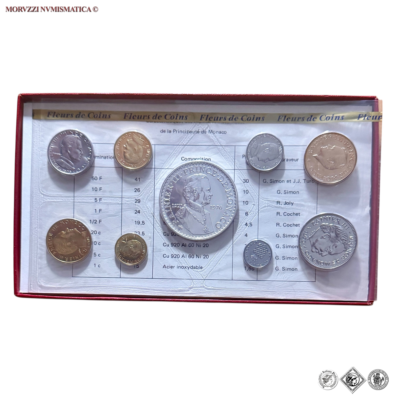 Principato di Monaco, RANIERI III, 1949-2005, SERIE DI 9 VALORI, Emissione: 1976, Zecca di Parigi, Rif. bibl. Gadoury, p. 501; Metallo: vari, (ME112168), FDC
