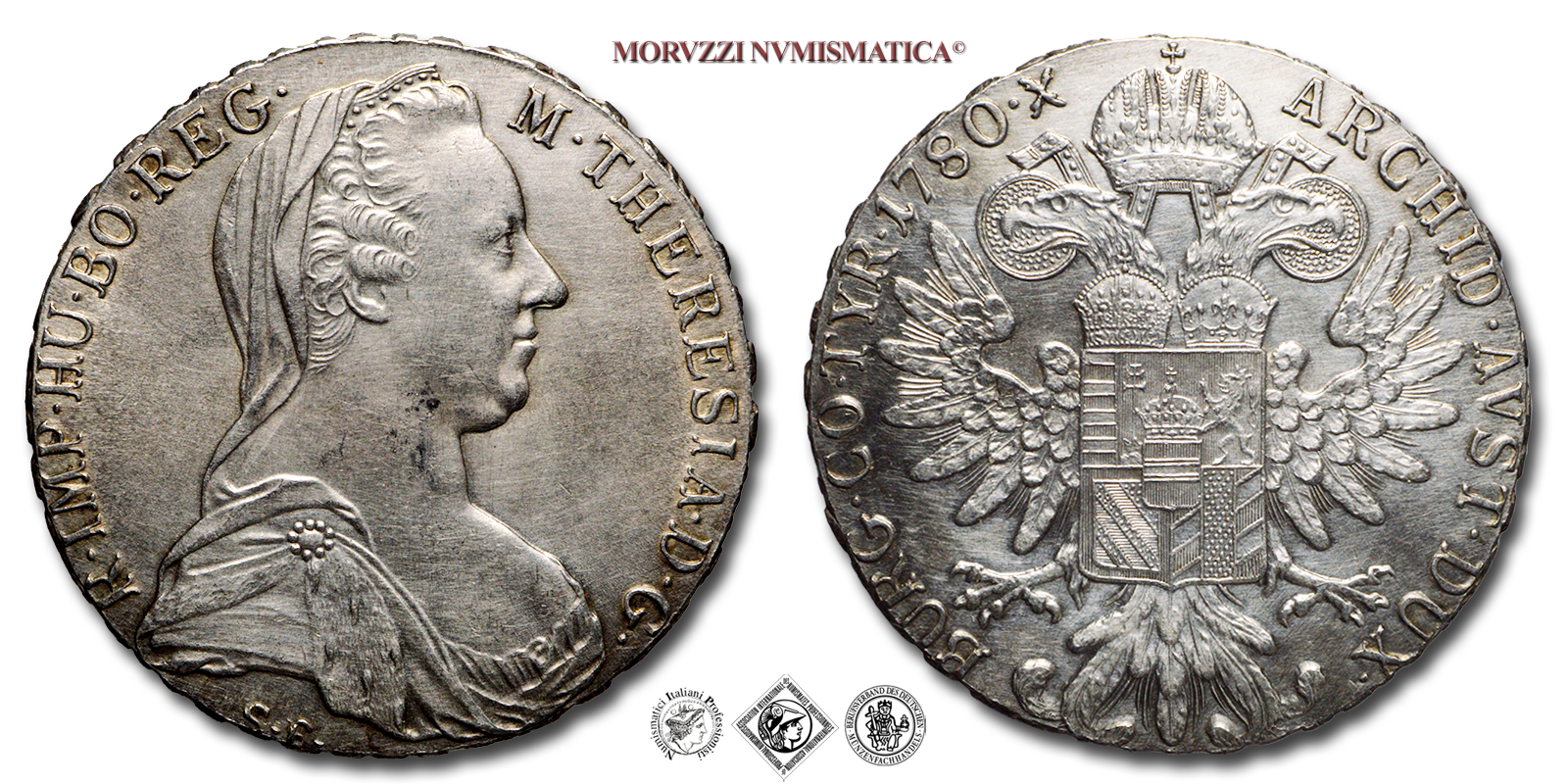 Regno d'Italia, Colonia Eritrea, MARIA TERESA, TALLERO DI CONVENZIONE, Emissione: 1780, D/ ARCHID • AUST • DUX • BURG • CO • TYR • 1780 • X, aquila bicipite dell'Impero Austro-Ungarico con stemma degli Asburgo sul petto, R/ M • THERESIA • D • G • R • IMP • HU • BO • REG •, busto velato di Maria Teresa d'Austria volto a destra. Sotto il busto le iniziali (S • F •) dei responsabili della zecca di Günzburg, Zecca di Roma, Rif. bibl. Pagani, 957; Metallo: AR, gr. 28,03, (MI144733), Diam.: mm. 40,37, FDC