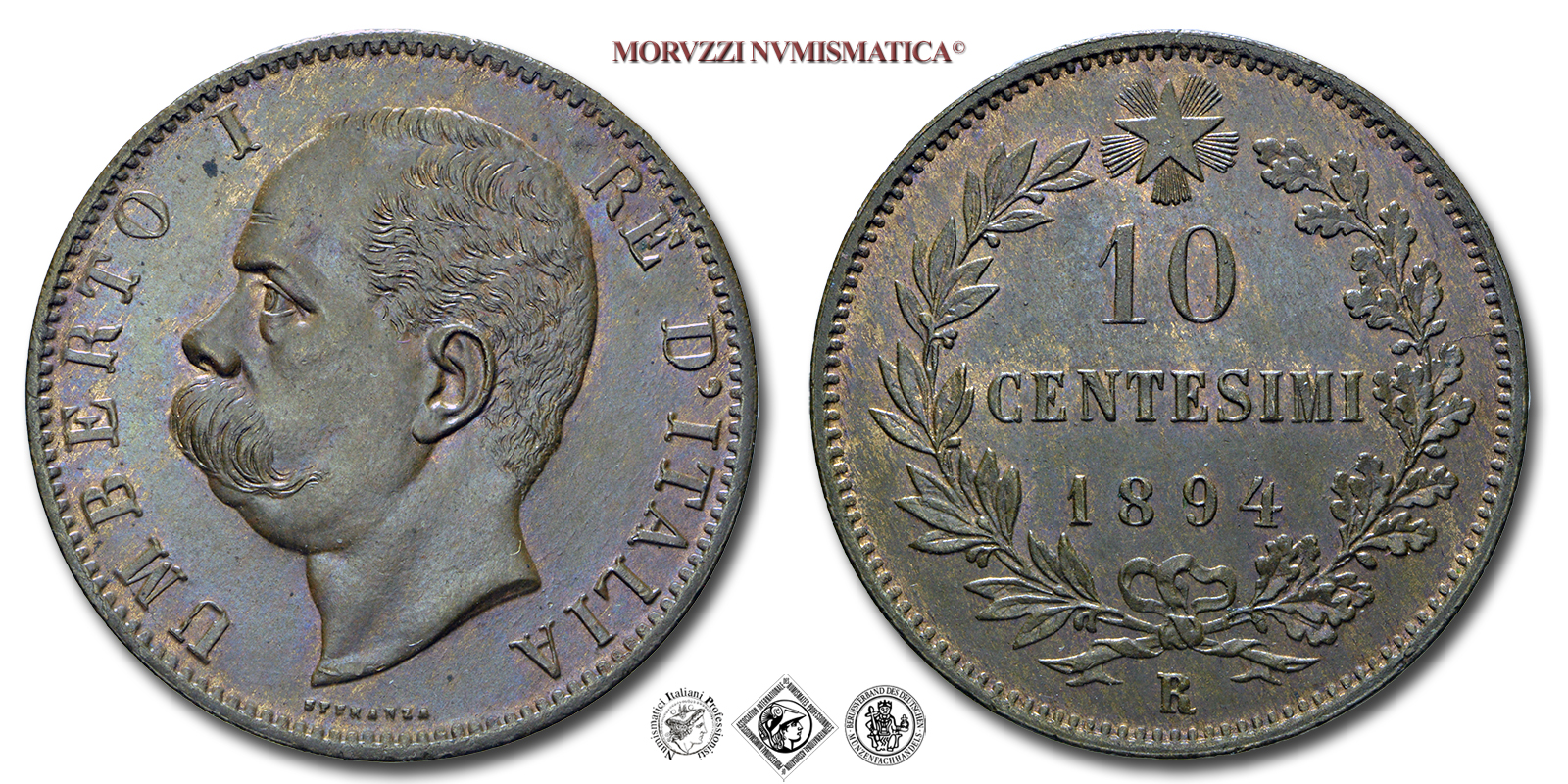 Emissione: 1894 R, Zecca di Roma, Rif. bibl. Pagani, 615; Metallo: CU, gr. 10,02, (MI153510), Diam.: mm. 30,33, qFDC, (R)