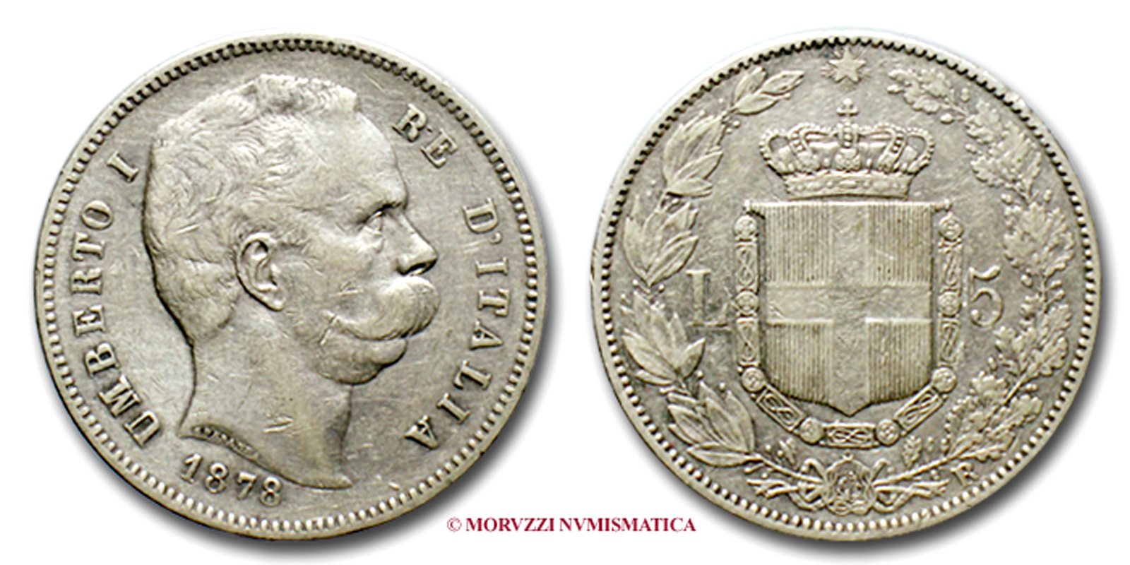 Emissione: 1878, Zecca di Roma, Rif. bibl. Pagani, 589; Metallo: AR, gr. 24,90, (MI117785), Diam.: mm. 37,08, mBB, (RR)