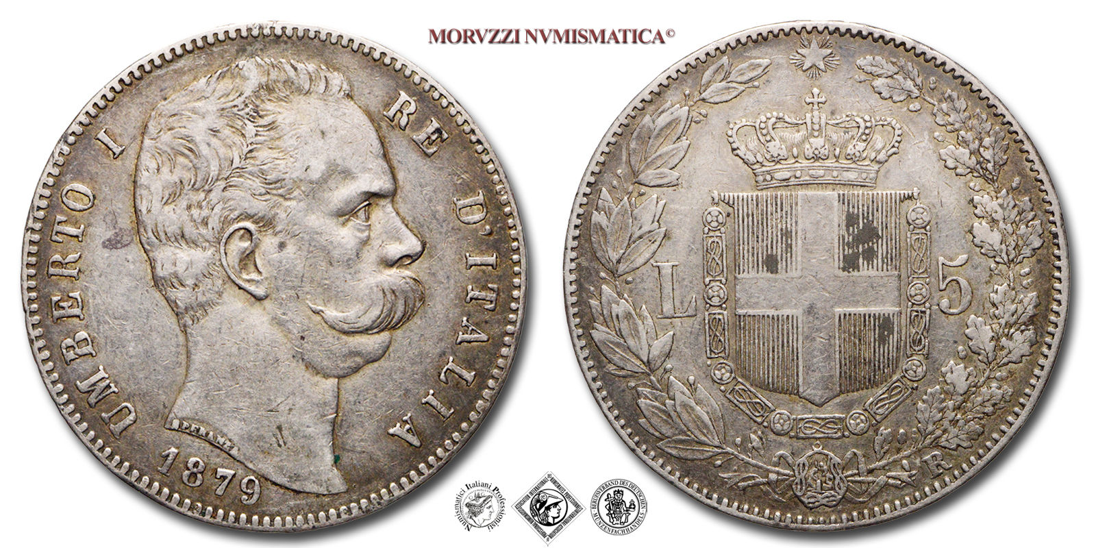Emissione: 1879, Zecca di Roma, Rif. bibl. Pagani, 590; Metallo: AR, gr. 24,87, (MI128982), Diam.: mm. 37,02, qSPL