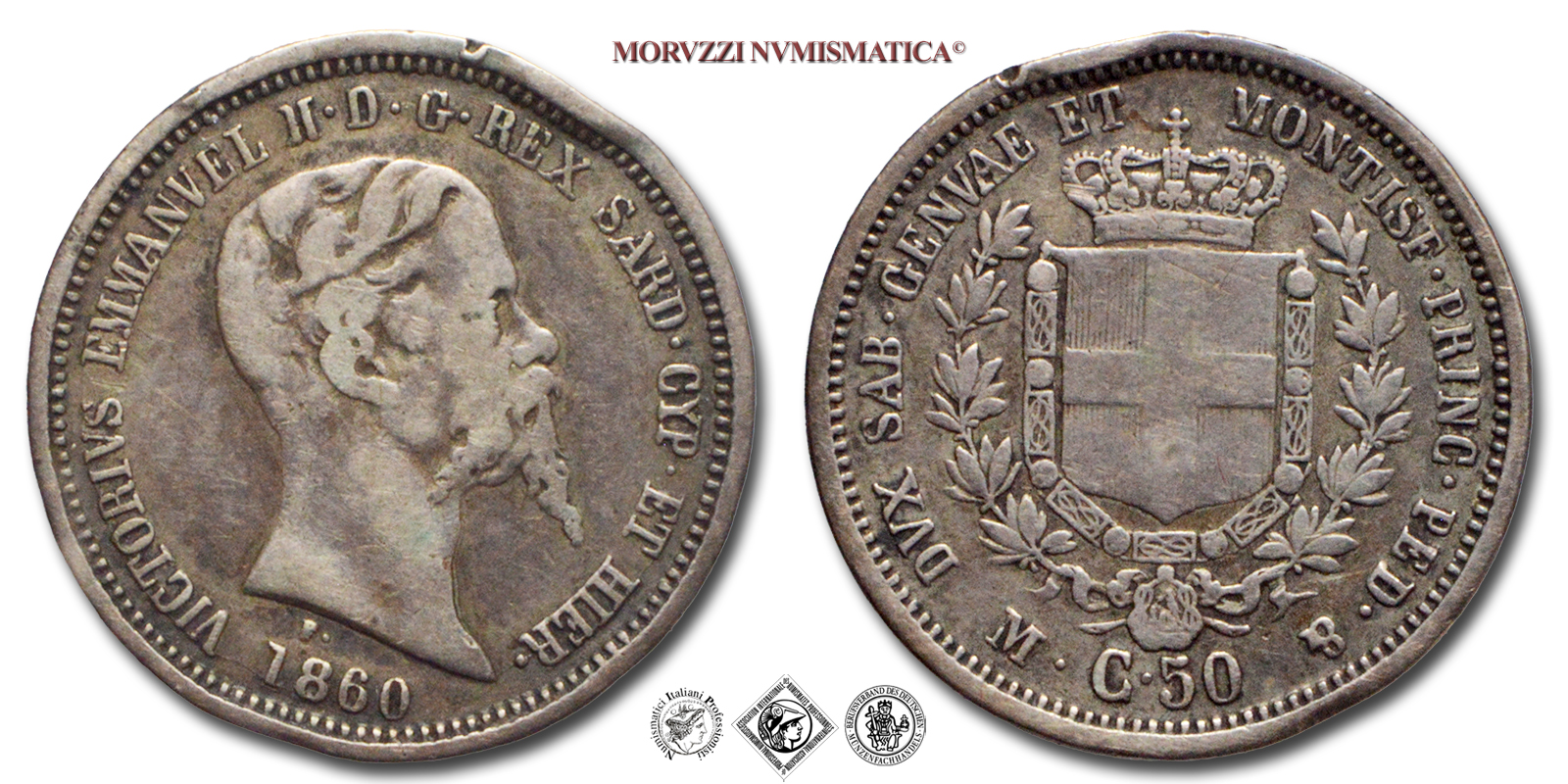 Emissione: 1860, Zecca di Firenze, Rif. bibl. Pagani, 443; Metallo: AR, gr. 2,40, (MI118633), Diam.: mm. 18,13, MB