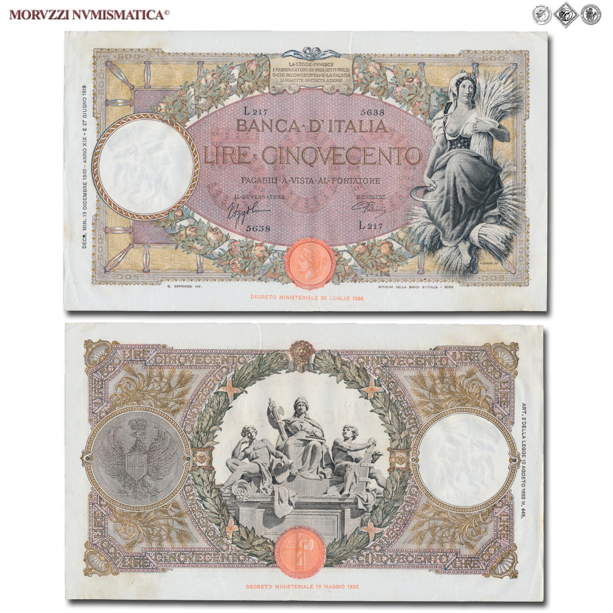 Rif. bibl. Crapanzano, 316; (CM103878), Firme: Azzolini, Urbini, n° di serie: L217 5638, mSPL