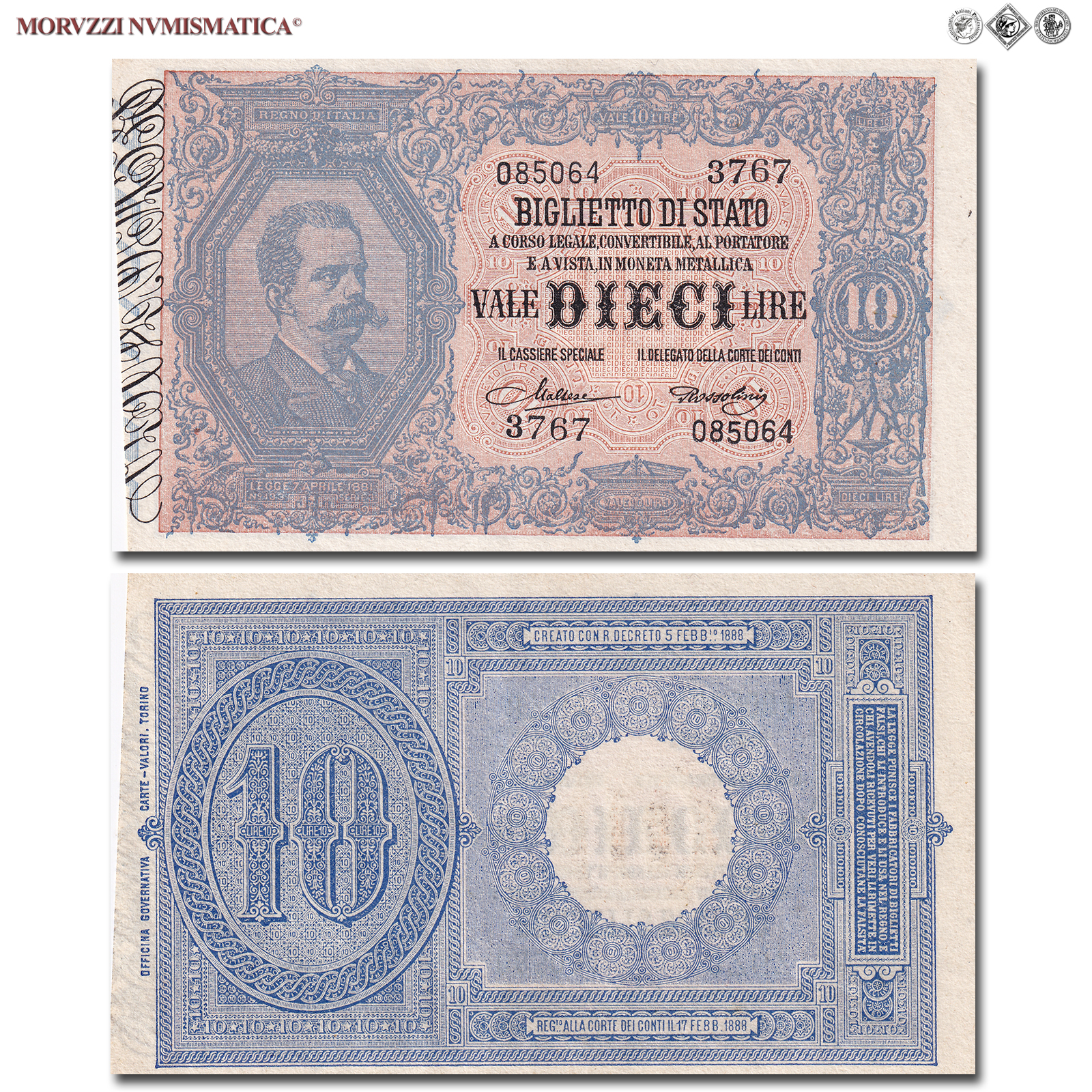 Italia, Vittorio Emanuele III, BIGLIETTO DI STATO, LIRE 10, 19.05.1923, D/ Busto di Umberto I entro un medaglione, R/ Cifra "10" posta in un ovale, Rif. bibl. Crapanzano, BS41; (CM87893), Firme: Maltese, Rossolini, n° di serie: 3767 085064, FDS
