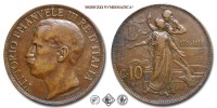 Regno d'Italia, VITTORIO EMANUELE III, 1900-1943, CENTESIMI 10, Cinquantenario, Emissione: 1911, D/ VITTORIO EMANUELE III RE D'ITALIA, testa nuda del Re a s.; sotto il collo: i nomi dell'autore (D • TRENTACOSTE) e dell'incisore (L • GIORGI INC •), R/ due figure allegoriche che simboleggiano l'Italia (la figura femminile) e la città di Roma (la figura maschile posta su di un piedistallo al cui lato si intravede un aratro); sullo sfondo: la prora di una nave mercantile; nel campo, a d.: le date 1861-1911; nel campo, a s: l'indicazione del valore (C • 10) e sotto il segno di zecca (R •), Zecca di Roma, Rif. bibl. Pagani, 863; Metallo: CU, gr. 10,03, (MI162156), Diam.: mm. 30,27, qFDC