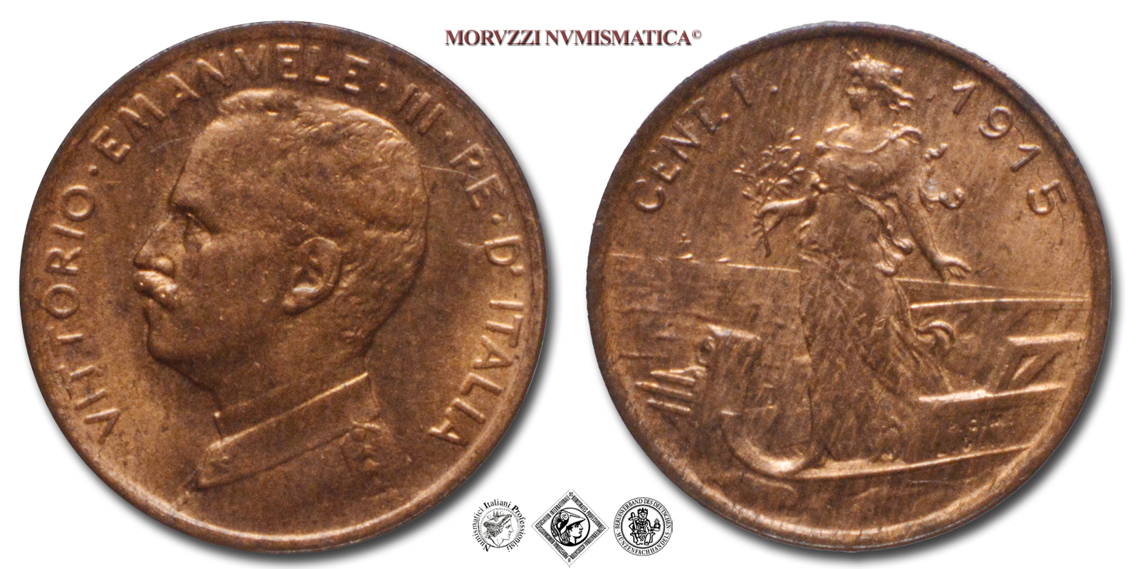 Emissione: 1915, Zecca di Roma, Rif. bibl. Pagani, 952; Metallo: CU, gr. 1,00, (MI158401), Diam.: mm. 15,12, FDC