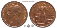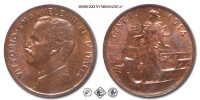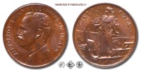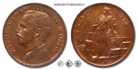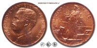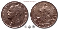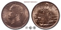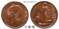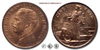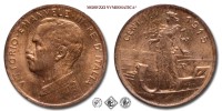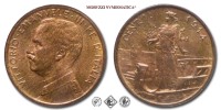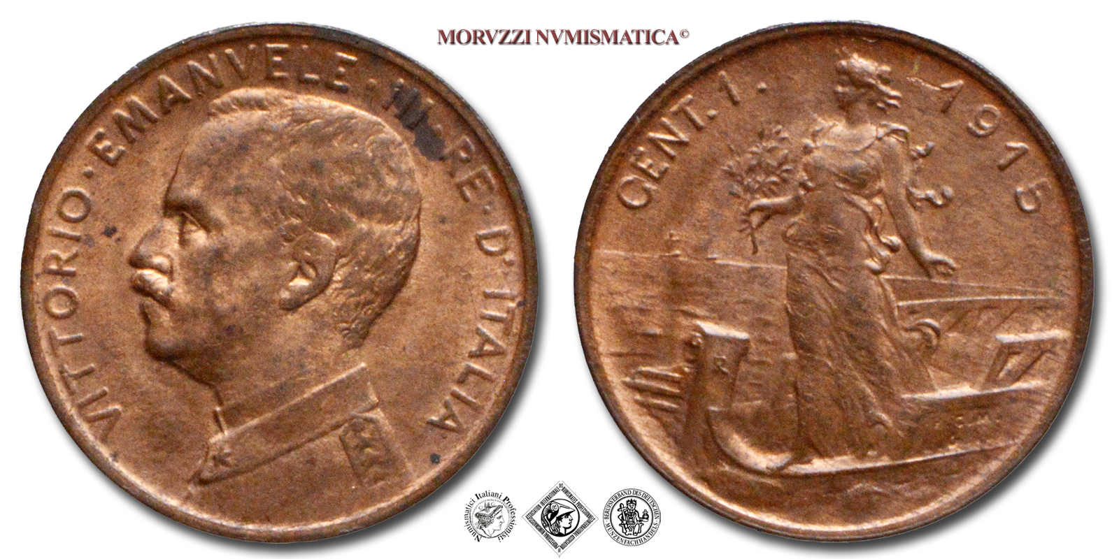 Regno d'Italia, VITTORIO EMANUELE III, 1900-1943, CENTESIMO, Italia su prora, Emissione: 1915, D/ VITTORIO • EMANUELE • III • RE • D'ITALIA, semibusto del Re in uniforme a s., R/ Figura allegorica femminile simboleggiante l'Italia su di una nave con un ramoscello di ulivo nella mano destra. Sulla prua della nave R in rilievo (Roma), sulla fiancata le iniziali in incuso degli autori P.C.M. (Pietro Canonica) e L.G.I. (Luigi Giorgi). In alto, lungo il bordo: il valore (CENT. 1) e il millesimo (1915), Zecca di Roma, Rif. bibl. Pagani, 952; Metallo: CU, gr. 0,99, (MI39706), Diam.: mm. 14,98, qFDC