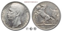 Regno d'Italia, VITTORIO EMANUELE III, 1900-1943, LIRE 10, Biga - due rosette, Emissione: 1927, D/ VITT • EM • III • RE • D'ITALIA •, testa nuda del Re a sinistra, R/ figura allegorica dell'Italia volta a s., su biga, nella mano sinistra stringe un fascio littorio e con la destra le redini; Sotto ai cavalli i nomi dell'incisore (MOTTI INC •) e dell'autore (G • ROMAGNOLI). In esergo il valore (L • 10) tra la data (1927) e il segno di zecca (R), Zecca di Roma, Rif. bibl. Pagani, 692a; Metallo: AR, 10,00, (MI75060), Diam.: mm. 27,10, mBB