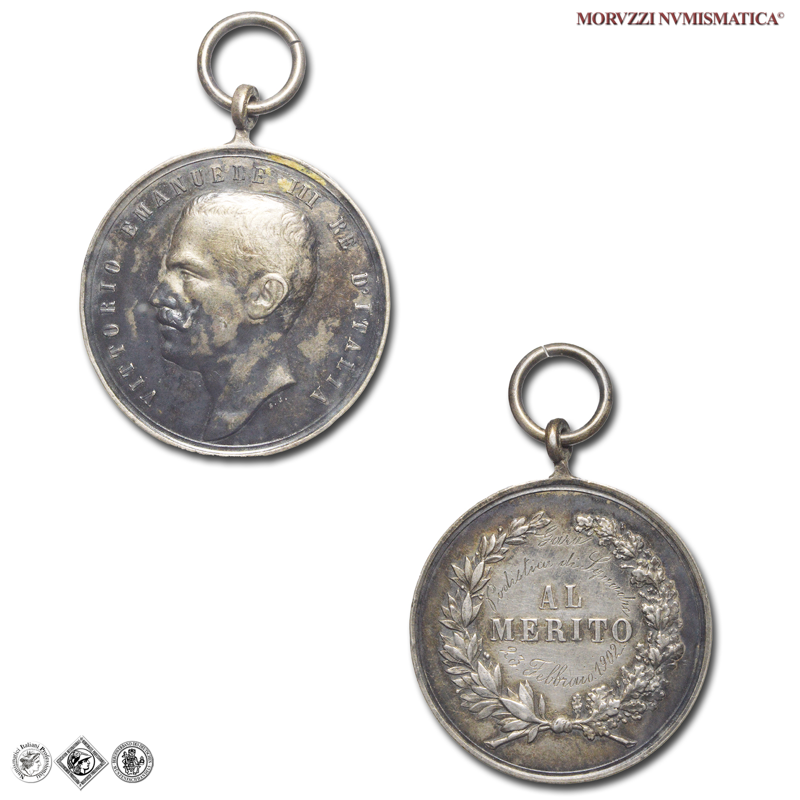 Italia, VITTORIO EMANUELE III, 1922-1945, MEDAGLIA, Gara podistica a squadre, Emissione: 23.02.1902, D/ VITTORIO EMANUELE III RE D'ITALIA, testa nuda a s.; sotto: S. J., R/ AL MERITO, in corona di quercia e di alloro, inciso Gara Podistica di Squadre, Opus Stefano Johnson, Metallo: WM, gr. 21,17, (MY141572), Diam.: mm. 38,82, mBB