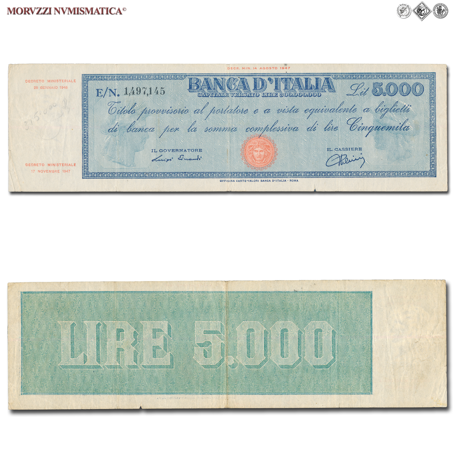Rif. bibl. Crapanzano, 513; (CM111681), Firme: Einaudi, Urbini, n° di serie: E/N 1,497,145, BB, (NC)