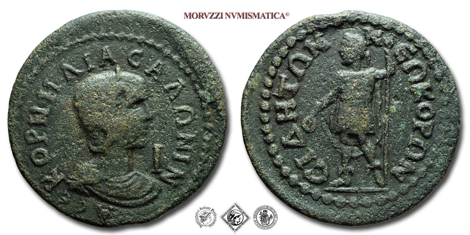 SALONINA, Moglie di Gallieno, 253-268 d.C., BRONZO 10 ASSARIA, Emissione: 253-268 d.C., Zecca di Side, Rif. bibl. Sear, 4676; SNG Dan., 429; Metallo: AE, gr. 18,82, (MR24998), Diam.: mm. 31,05, BB, (R)