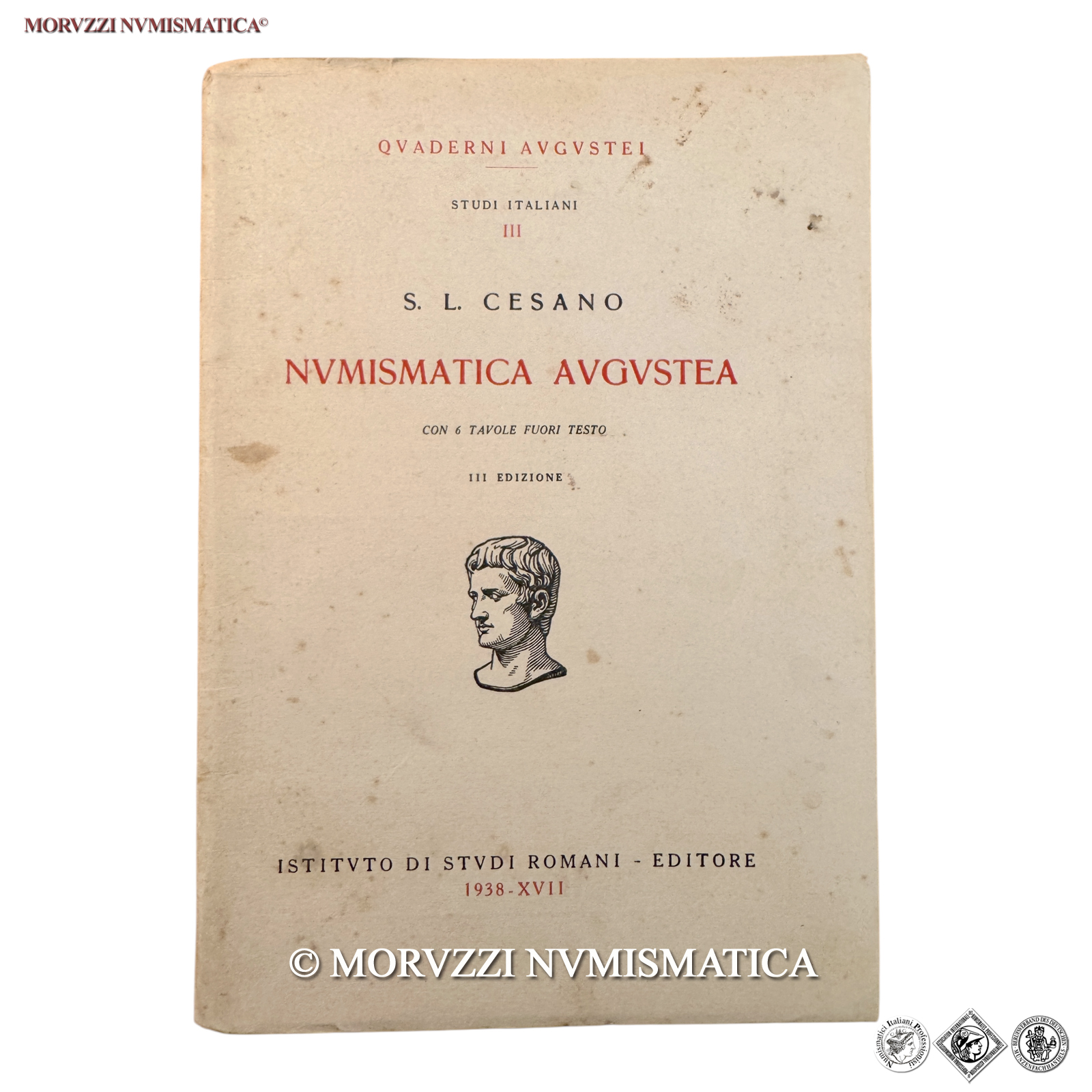 Secondina Lorenza Cesano, NVMISMATICA AVGVSTEA, QVADERNI AVGVSTEI STUDI ITALIANI III, pp. 33 e 3 tav., III ed. con 6 tavole fuori testo, ISTITVTO DI STUDI ROMANI - EDITORE, Roma, 1938-XVII