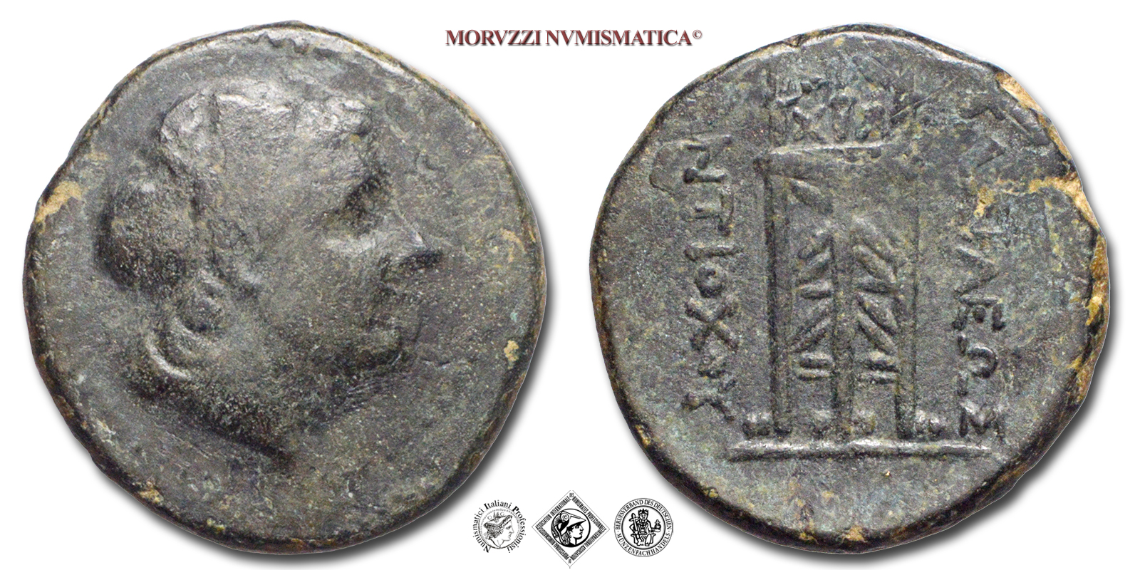 Regno Seleucide, ANTIOCO I, Soter, 280-261 a.C., BRONZO, Emissione: 280-261 a.C., D/ testa laureata di Apollo a d., R/ BAΣIΛEΩΣ - ANTIOXOY, tripode, Zecca di Antiochia, Rif. bibl. Lindgren, 1762; Metallo: AE, gr. 12,43, (MG162419), Diam.: mm. 24,56, qBB