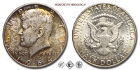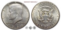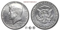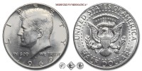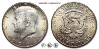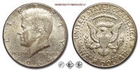 Stati Uniti d'America, DOLLARO 1/2, Kennedy, Emissione: 1964, D/ LIBERTY, Ritratto di John F. Kennedy a sinistra; nel campo, ai lati: IN GOD WE TRUST; sul troncamento del collo: la sigla dell'incisore (GR per Gilroy Roberts); in basso: data (1964), R/ UNITED STATES OF AMERICA, Sigillo presidenziale modificato degli Stati Uniti d'America: uno scudo (con strisce verticali) sul petto di un'aquila americana. L'aquila regge con l'artiglio destro un ramoscello d'ulivo e con quello sinistro un fascio di tredici frecce e nel becco un cartiglio con la scritta "E PLURIBUS UNUM". Un cerchio di stelle circonda l'aquila; nel campo: la sigla dell'incisore (FG per Frank Gasparro); in basso: il valore (HALF DOLLAR), Zecca di Philadelphia, Rif. bibl. KM, 202; Metallo: AR, gr. 12,56, (ME160879), Diam.: mm. 30,60, qFDC