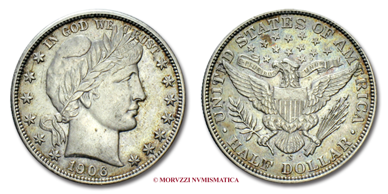 Emissione: 1906 S, Zecca di San Francisco, Rif. bibl. KM, 116; Metallo: AR, gr. 12,55, (ME116507), Diam.: mm. 30,47, qSPL