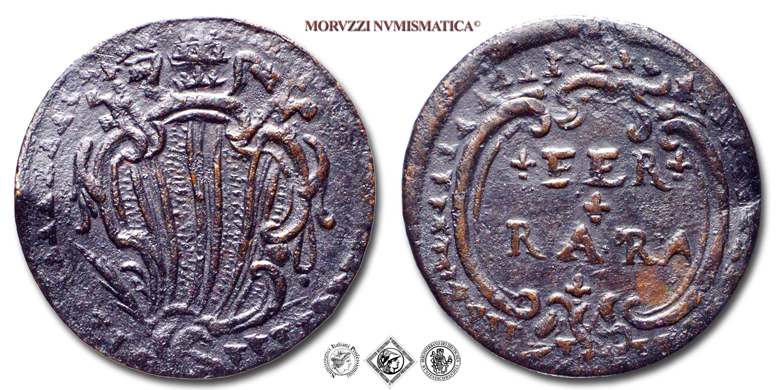 Emissione: *Senza data, Zecca di Ferrara, Rif. bibl. Muntoni, 427; C.N.I., 236; Metallo: CU, gr. 1,60, (MX153889), Diam.: mm. 18,75, mBB, (R)