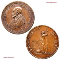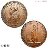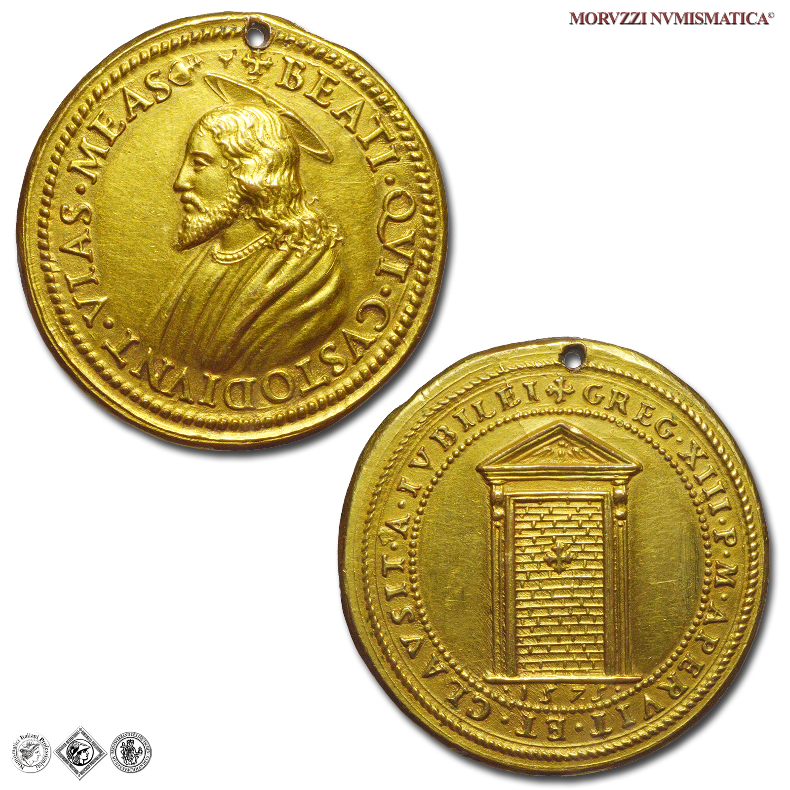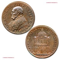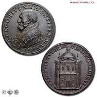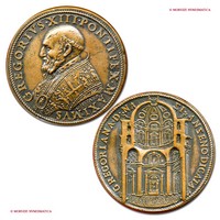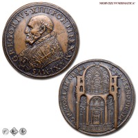Medaglia originale straordinaria, emessa il 24-12-1575 per ricordare la chiusura dell'Anno Santo. Fu ottenuta utilizzando due coni eseguiti originariamente come rovesci. Sebbene questi esemplari siano frutto di un accoppiamento anomalo di coni, le loro caratteristiche inducono a ritenerli originali; oltre per commemorare la Porta Santa, tali esemplari furono emessi con fine devozionale: l'immagine della Porta Santa abbinata a quella di Gesú costituirà infatti per fedeli e pellegrini un ricordo ambito e molto prezioso del Giubileo. Dal CNORP Modesti.