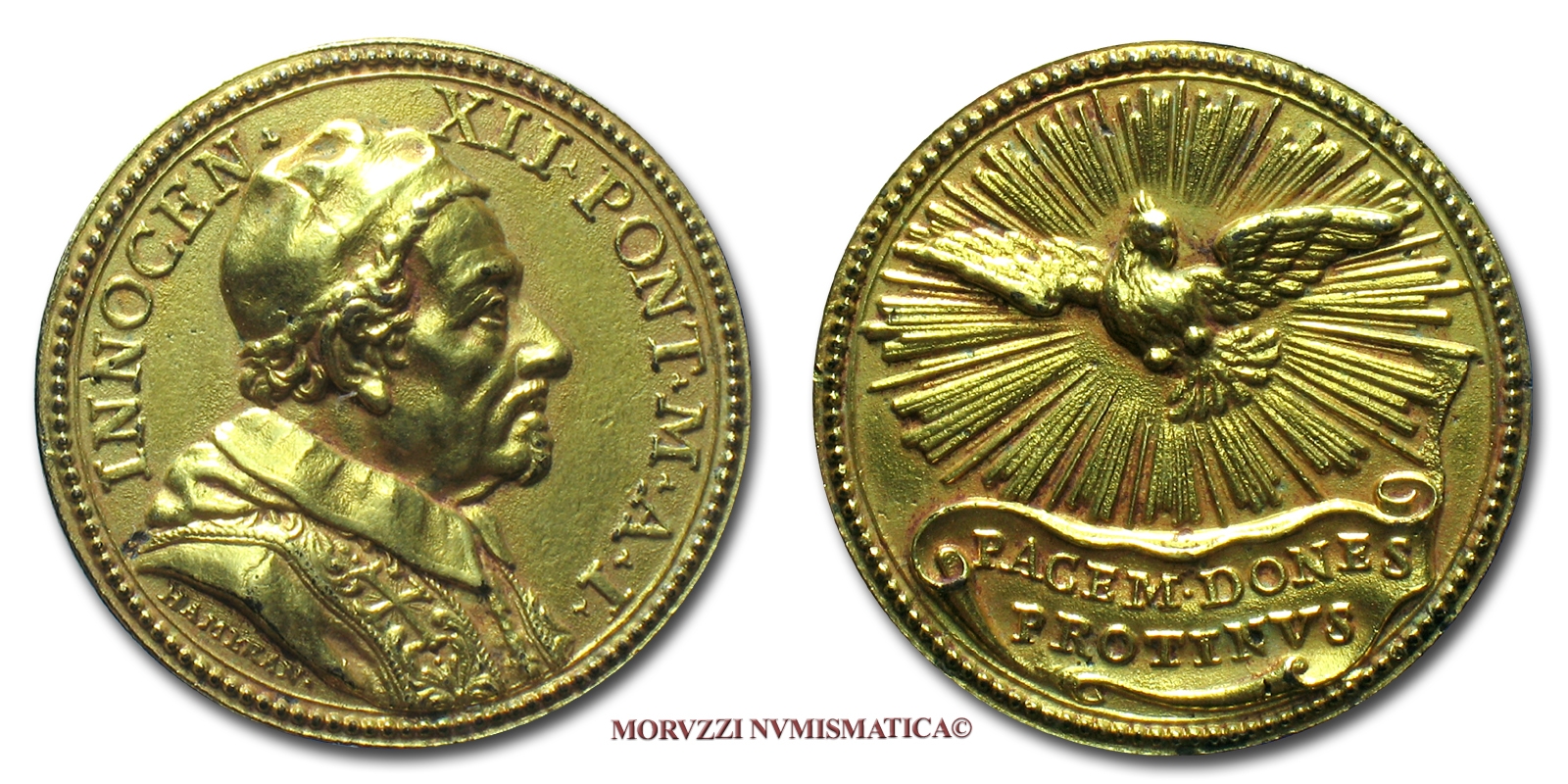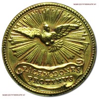 Invocazione allo Spirito Santo per la pace tra le potenze, Emissione: A I, Opus Giovanni Hamerani, Rif. bibl. Miselli, 301; Metallo: AE dorato, gr. 12,51, (MP138077), Diam.: mm. 30,82, qFDC, (R)