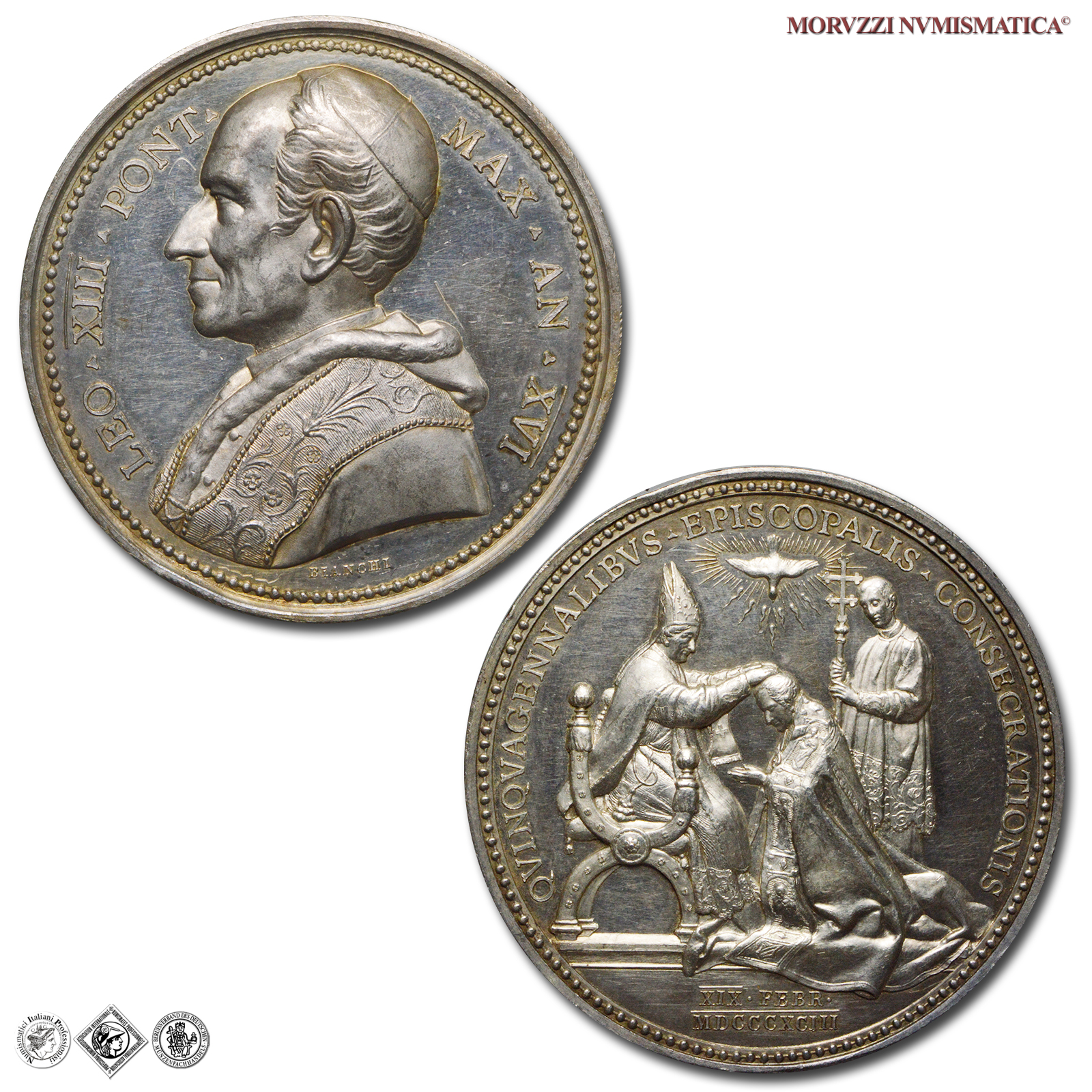 Medaglia annuale, emessa il 29 giugno 1893, a ricordo della Consacrazione Episcopale di Leone XIII.
