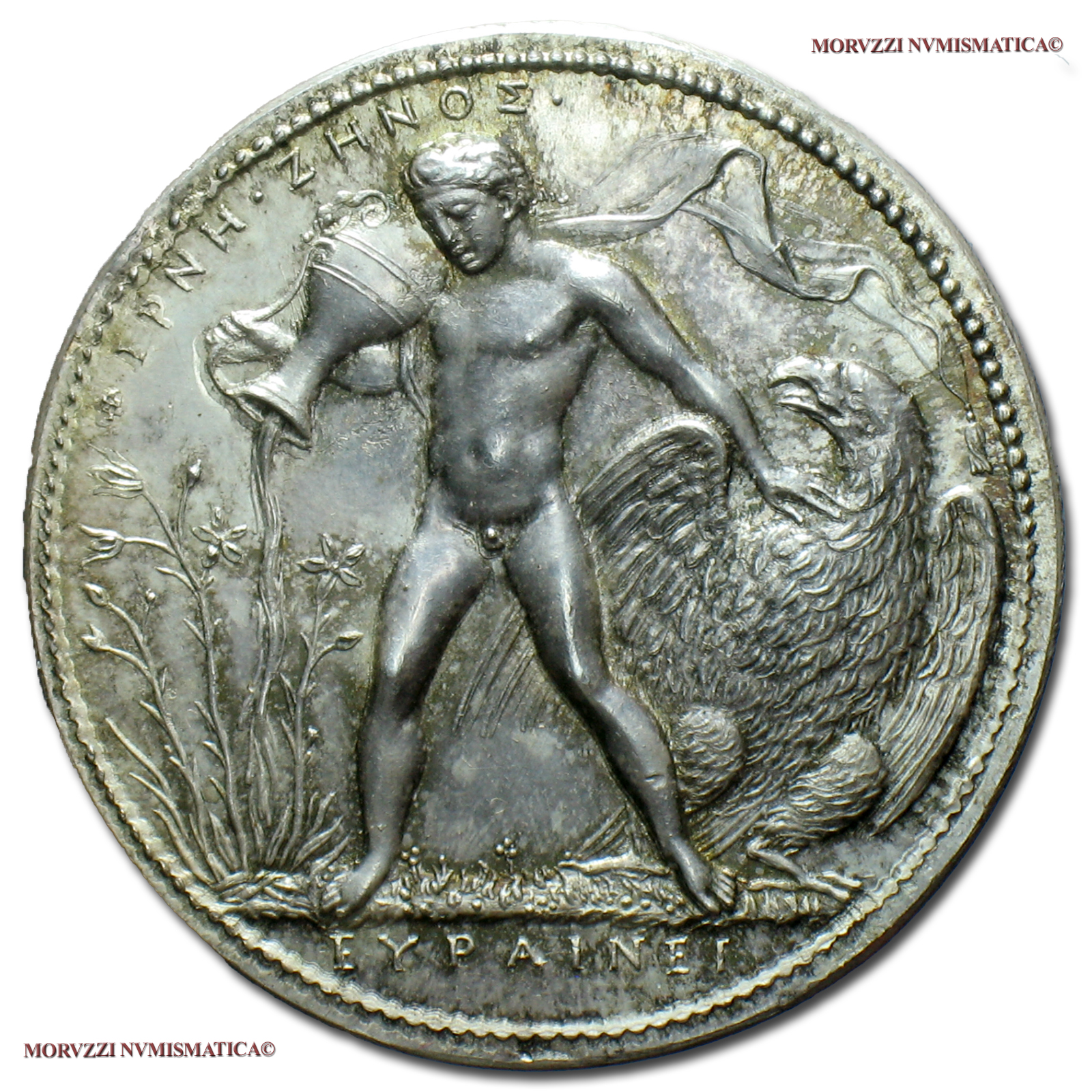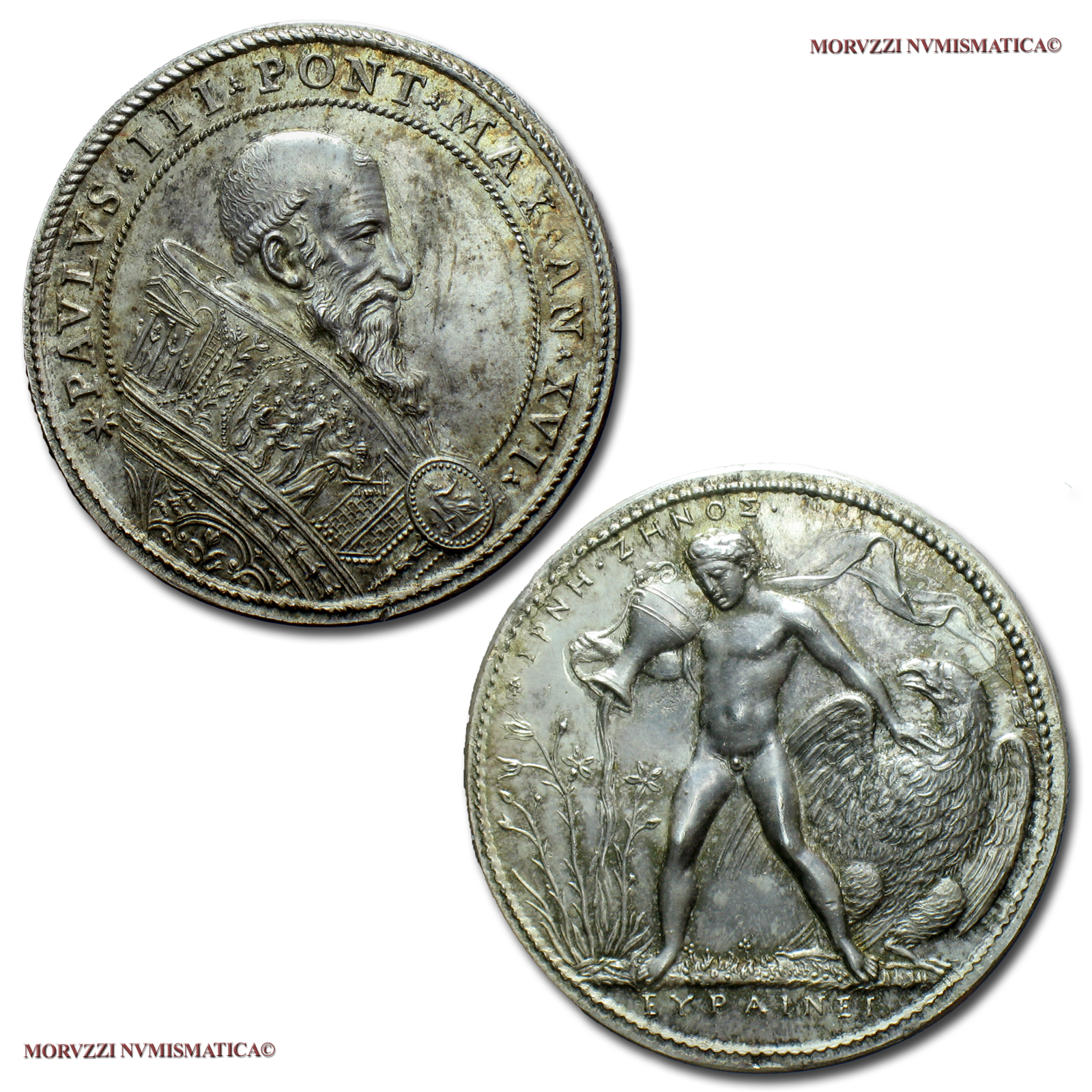 Ganimede e l'aquila, Emissione: 1549 AN XVI, Opus Alessandro Cesati detto il Grechetto, Rif. bibl. Modesti CNORP, 311; Metallo: AR, gr. 30,39, (MP141230), Diam.: mm. 41,69, FDC, (RR)