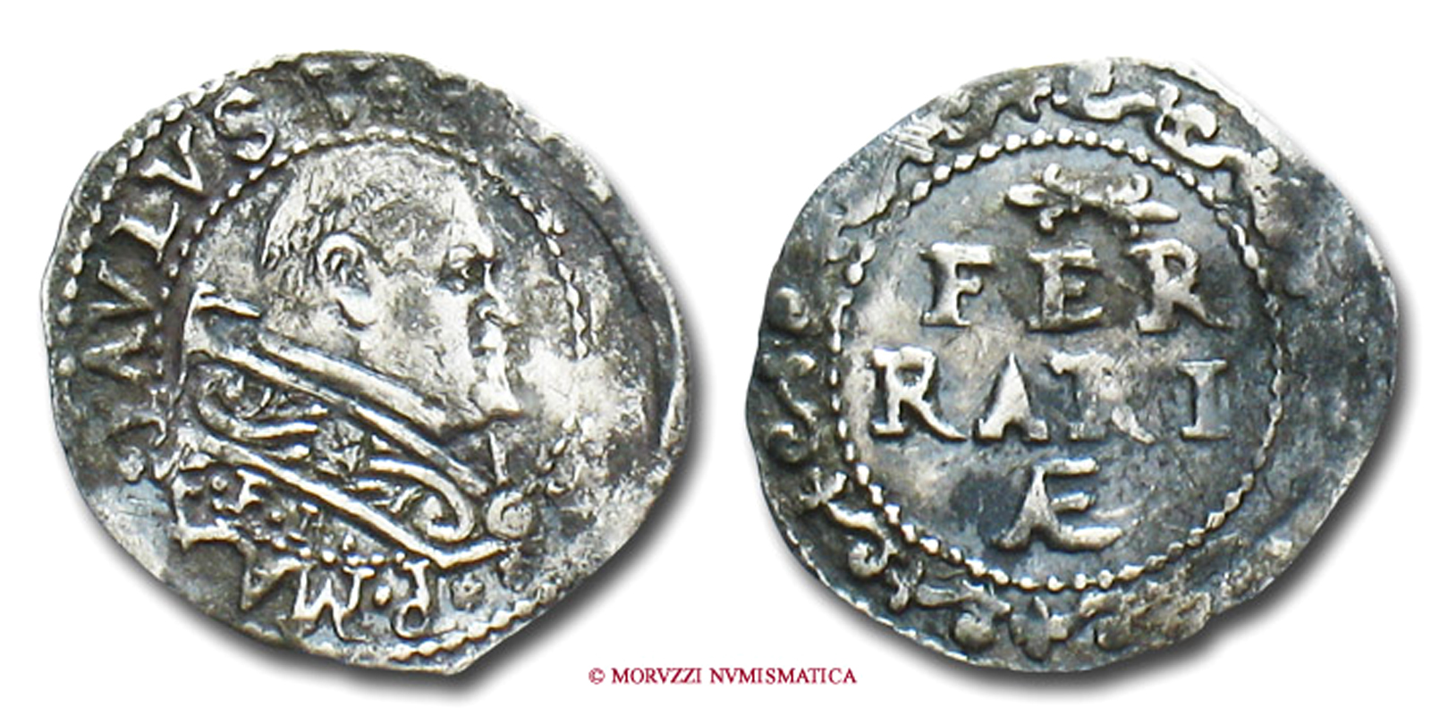 Senza data, Zecca di Ferrara, Rif. bibl. Muntoni, 227; Berman, 1609; C.N.I., 227; Metallo: AR, gr. 0,81, (MX7866), Diam.: mm. 17,39, mBB, (R)