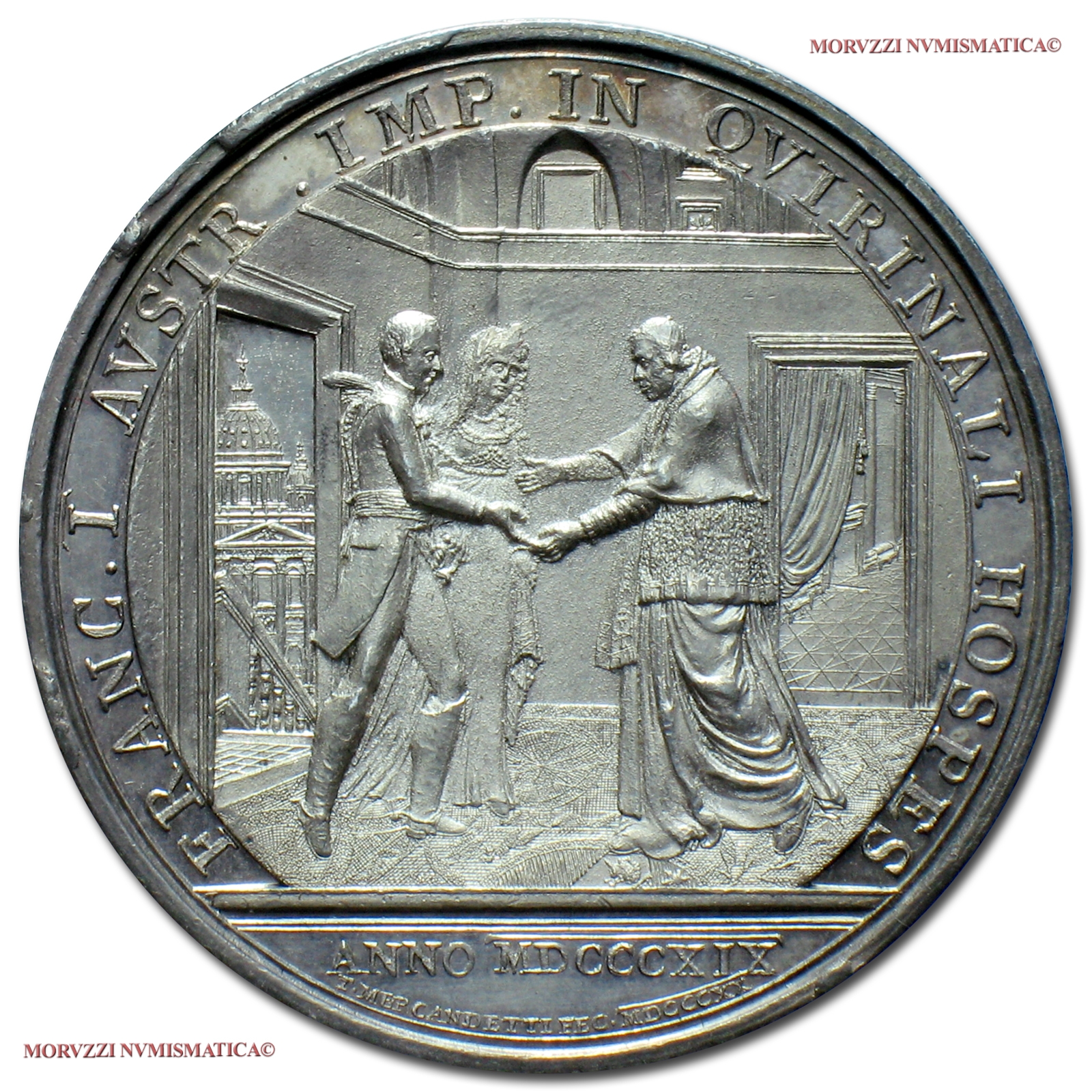 Visita dell'Imperatore d'Austria, Emissione: 1820 ANN XXI, Opus Tommaso Mercandetti, Rif. bibl. Bart., E820; Metallo: AR, gr. 33,18, (MP138074), Diam.: mm. 41,54, FDC, (R)