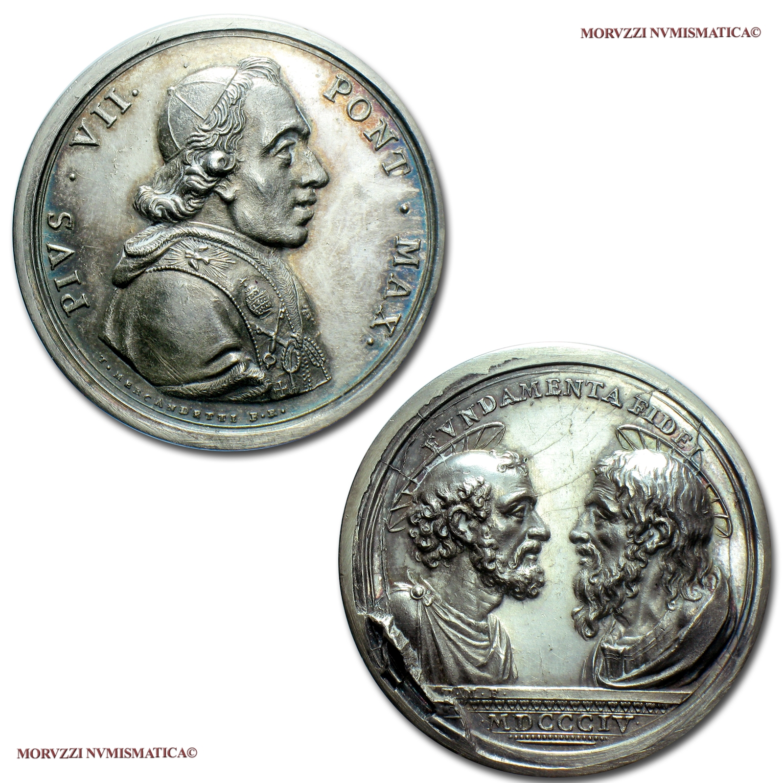 Devozione ai SS. Apostoli Pietro e Paolo, Emissione: 1804, Opus Mercandetti, Rif. bibl. Patrignani, 19b; Metallo: AR, gr. 27,65, (MP136692), Diam.: mm. 39,38, FDC, (RR)