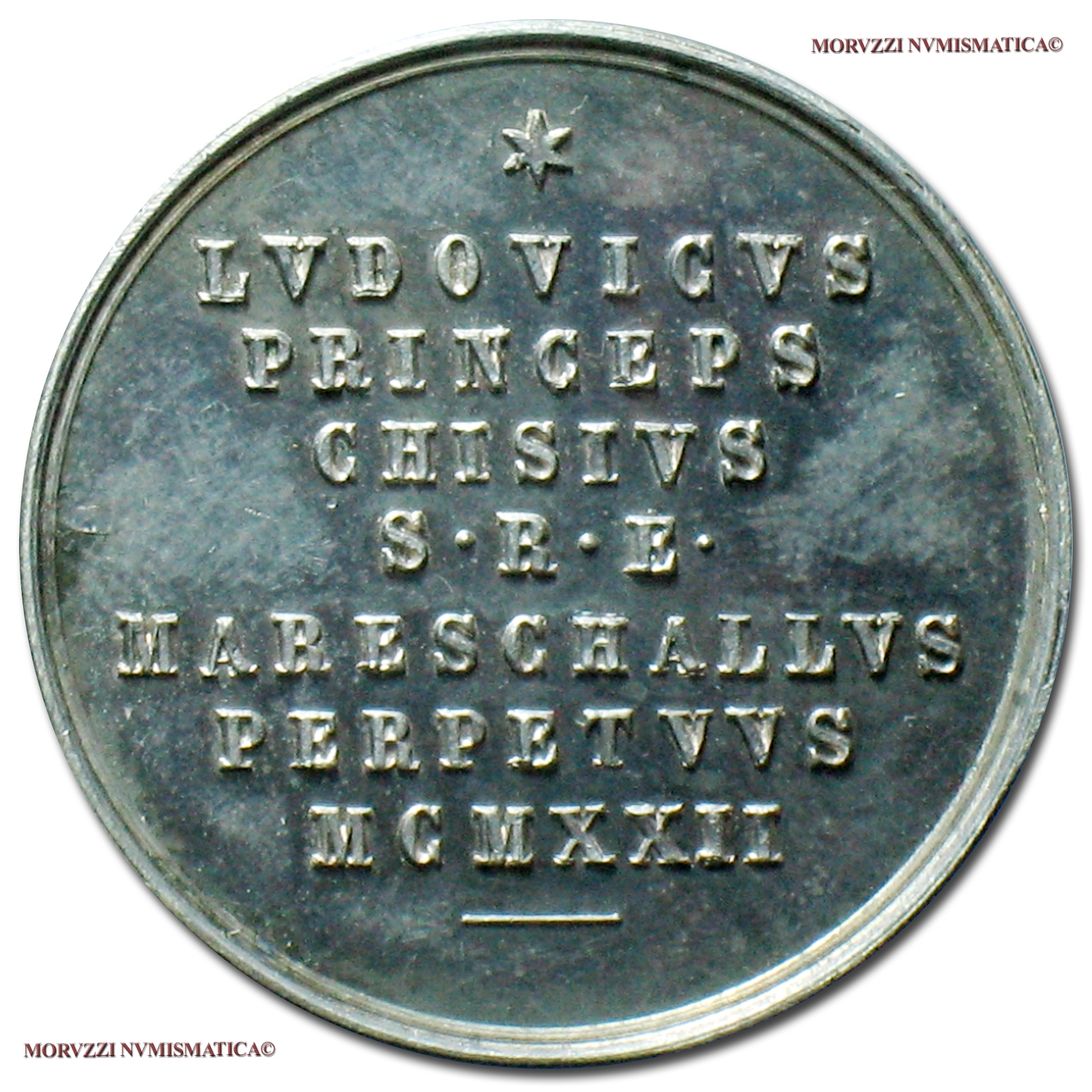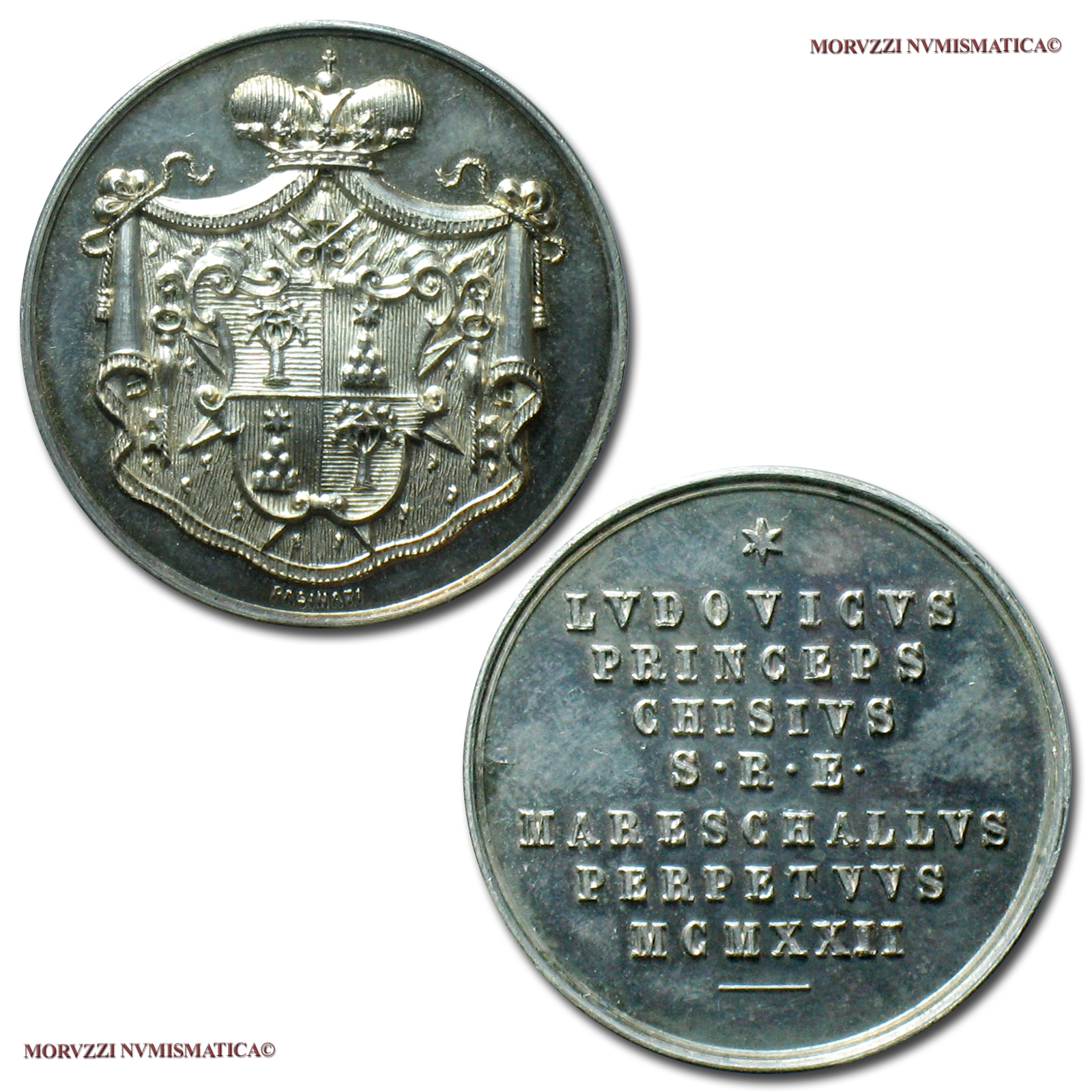 Maresciallo del Conclave Principe Ludovico Chigi, Emissione: 1922, Opus bottega di Pasinati a Roma, Rif. bibl. Boccia, 116; Carafa-Jacobini, 22; Metallo: AR, gr. 10,73, (MP140069), Diam.: mm. 29,00, FDC, (RR)