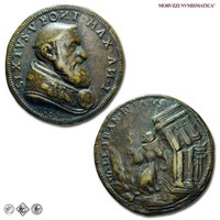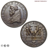Erezione obelisco Piazza San Pietro, Emissione: 1586, Opus Michele Balla, Rif. bibl. Modesti, CNORP 832; Metallo: AE, gr. 20,90, (MP160411), Diam.: mm. 39,68, mBB, (RR)