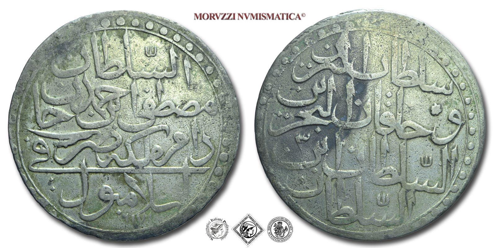 Emissione: 1757, Zecca di Istanbul, Rif. bibl. KM, 324; Metallo: AR, gr. 28,14, (ME10746), Diam.: mm. 43,26, qBB