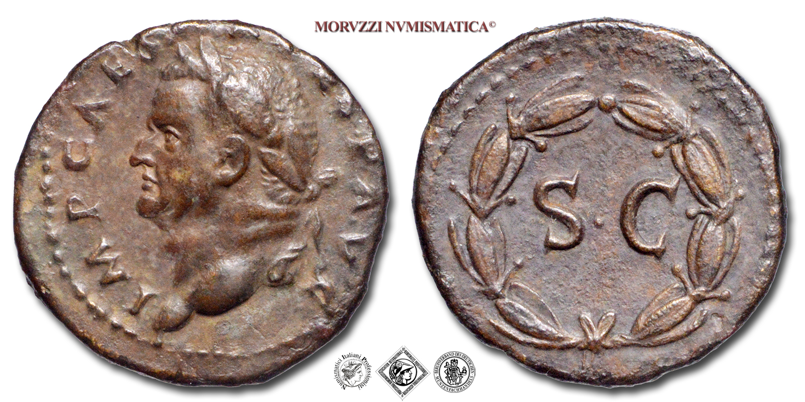 Impero Romano, Siria, VESPASIANO, 69-79 d.C., BRONZO, Emissione: 74 d.C, D/ IMP CAESAR VESP AVG, testa laureata a s., R/ SC entro corona di foglie di alloro, Zecca di Antiochia ad Orontem, Rif. bibl. R.P.C., 1984; Metallo: AE, gr. 4,93, (MR25008), Diam.: mm. 21,59, SPL
