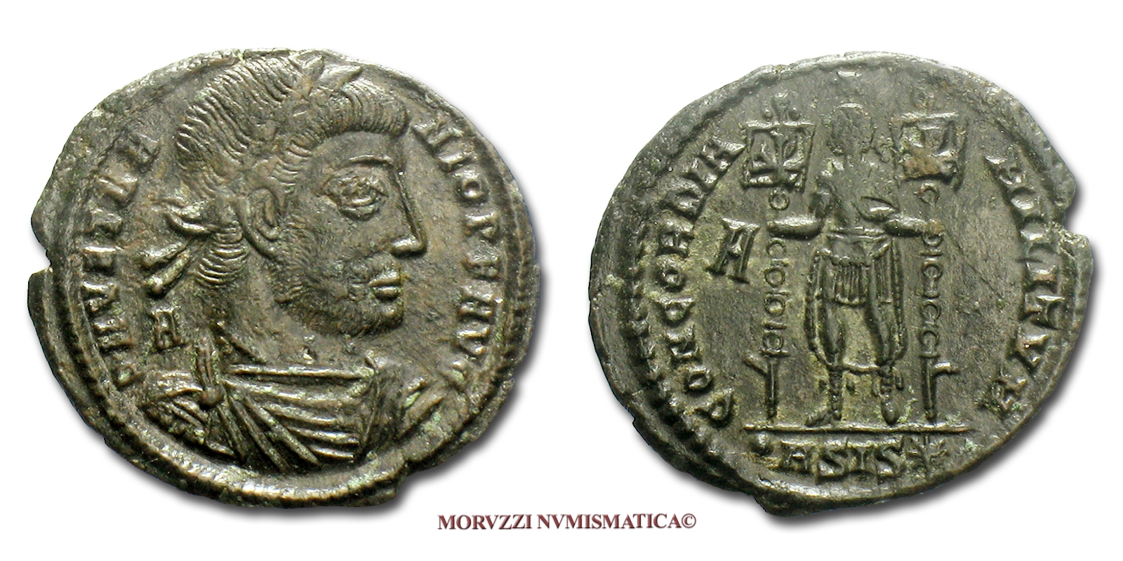 VETRANIO, 350 d.C., PICCOLO BRONZO, Emissione: 350 d.C., Zecca di Siscia, Rif. bibl. R.I.C., 281/S; Cohen, 1/Fr. 25; Metallo: AE, gr. 4,96, (MR128518), Diam.: mm. 24,59, mBB, (R) Ex Alagna.
