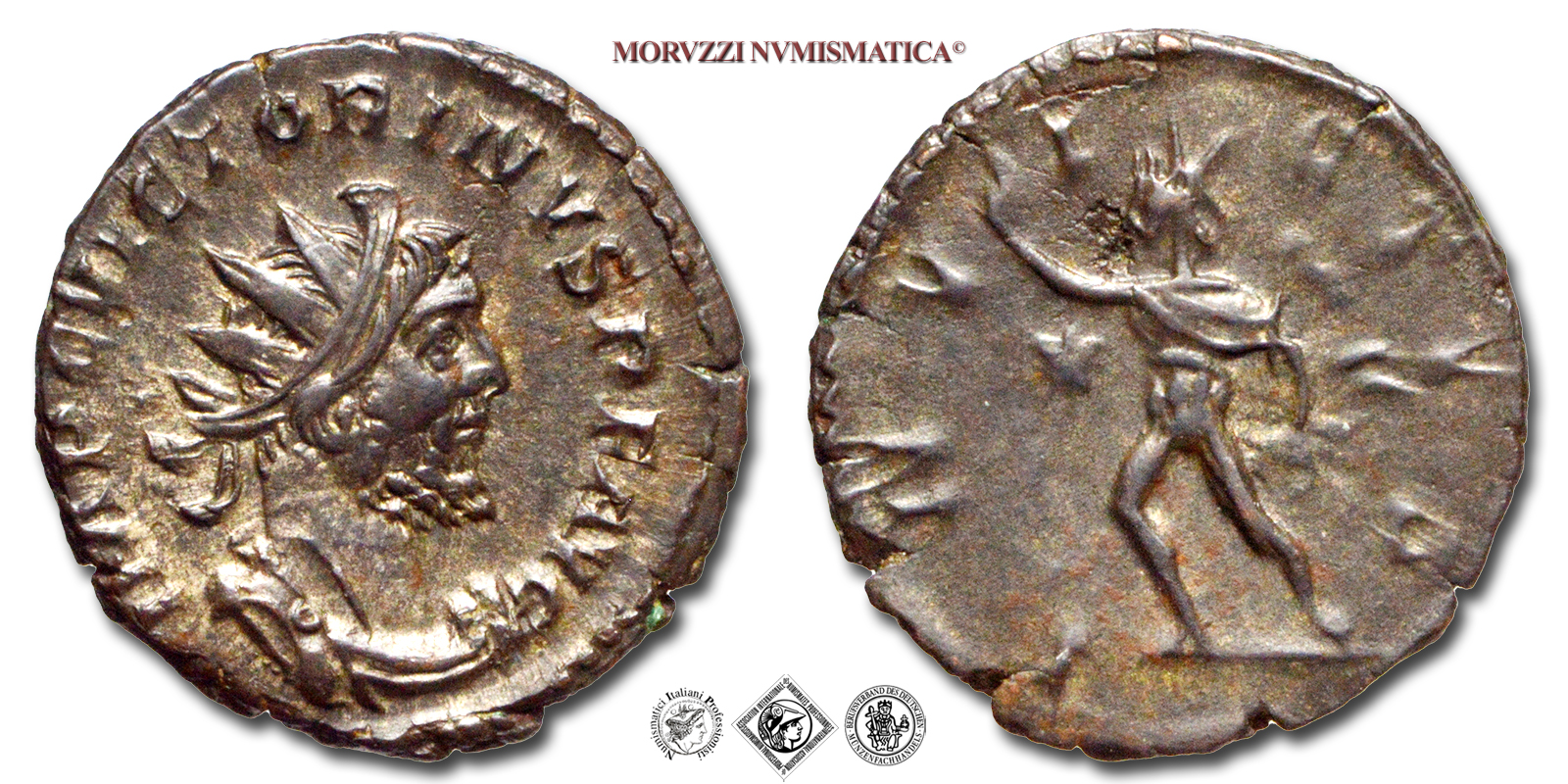 Impero Romano, VITTORINO, 268-270 d.C., ANTONINIANO, Emissione: 268-270 d.C., D/ IMP C VICTORINVS P F AVG, busto radiato con paludamento a d., R/ INVICTVS, il Sole radiato andante a s. leva in alto la destra. A s. una stella, Zecca di Colonia, Rif. bibl. R.I.C., 118/S; Cohen, 49; Metallo: AE, gr. 2,71, (MR163111), Diam.: mm. 19,78, qSPL